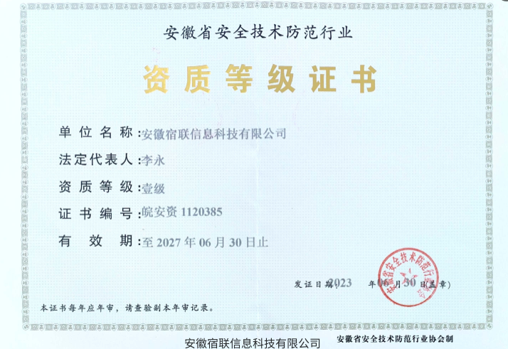 安全技术防范行业资质等级证书